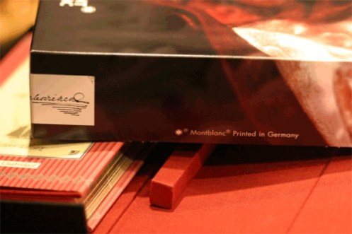 لنفتح العلبة .. يوجد بداخلها ايضا كتيب صغير ( كاتلوج به عينات لكتابة القلم ) وعلبة القلم التي كانت ايضا على شكل كتاب