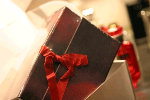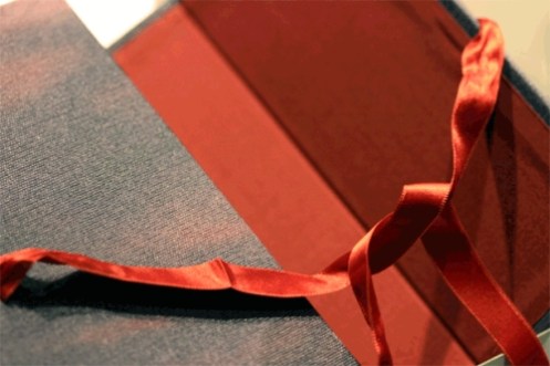 بعد فتح المغلف الأبيض يظهر هذا المغلف المصنوع من الكرتون المقوى وشريط حريري أحمر ، الحجم اكبر من علبة قلم منفرد .. ربما لأنها تغليفة الكريسمس لنسترق نظرة جانبية