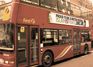 فوجئ سائقوا لندن والمشاة برسالة قصيرة وجهها عدد من الشباب المسلم المتطوع اليهم على جانب الحافلات، هي: «الإسلام هو السلام». وباستخدام عبارة بسيطة والوان زاهية، تعتمد هذه الاعلانات التي انتشرت في شوارع لندن وتحتها في محطات قطار الانفاق اللندني بداية هذا الاسبوع على طرق الاعلان الحديثة لايصال رسالة اسلامية تقليدية تدعو الى السلام ، في البدء قرأت الموضوع كخبر في صحيفة الشرق الأوسط لمشاهدته كامل اضغط هنا، واضيف ايضا الموقع الخاص للمؤسسه هنا .
