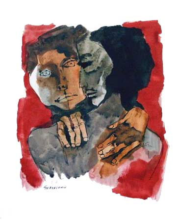 Lover / a large color printed signature art work (50 x 50 cm) by Oswaldo Guayasamin