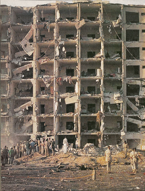 بتاريخ هذا اليوم 25 /6 من عام 1996 ميلاديه حدث انفجار ” ابراج الخبر ” الارهابي والذي استهدف مجمعا تسكنه جاليات امريكيه في السعوديه قد قدم بعضها ابان ” حرب الخليج ” واستقروا في الظهران تحت امرة القياده المركزيه لقوات الجيش الامريكي في البلاد (ARCENT-SA)