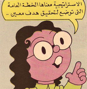 التي تقول بدورها ” الاجابه ليست سهله ولكن سأحاول تبسيطها ” توضح ان هذه العبارة تستخدم على الغالب في الحرب والسياسه ثم تقول عن الاستراتيجيه التالي :