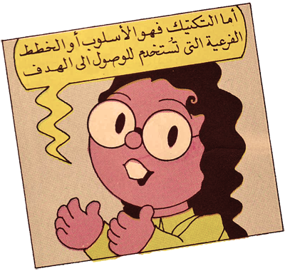 كلمة تكتيك ايضا يونانيه (Taktikē ) وتعنى فن تنظيم الجيش ، وهي بشكل آخر فن استخدام الاسلحة و الوحدات العسكريه وكل ما هو متواجد لتحقيق الاستراتيجيه بافضل طريقه ، وعرفت زكيه الكلمة باختصار حين قالت :