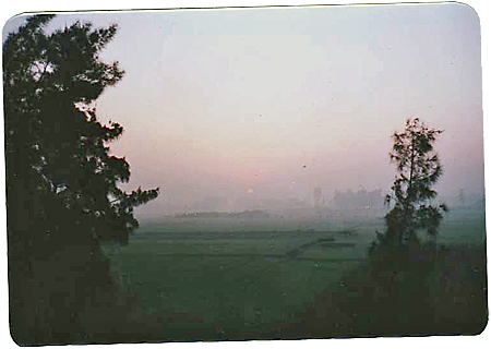 الصوره الثانيه كتب خلفها ” منظر في الريف المصري عند شروق يوم جديد / صيف عام 1988م ”  ولا ادري لم توقفت امام كلمة يوم جديد ، هل لان اليوم الجديد –  ورغم كثرة تكرار الايام – يظل نعمه وفرصه ثمينه  لتصحيح امور كثيره ؟ هل لان هذا اليوم قد يكون وفق ظروف معينه علامة فارقه في تاريخي او تاريخ البشريه عموما ؟ هل لأنه يعد زمن اضافي يساعدني على اكمال امور بدأتها بالامس ويجب ان انهيها ؟