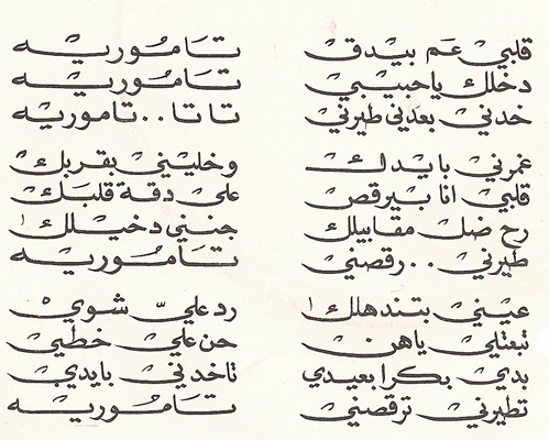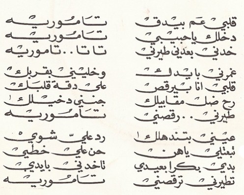 من ضمن  المجموعة اخترت اغنية لصباح من فيلم ( فندق الاحلام ) عنوانها ( قلبي عم بيدق / تاموري ) من كلمات والحان الياس الرحباني ، نزلت كاسطوانه عام 1966 ميلاديه عبر سلسلة صوت الشرق ، صورة الغلاف لـ Georges Karam، وكلمات الاغنية تقول كما كتب خلف الاسطوانه :