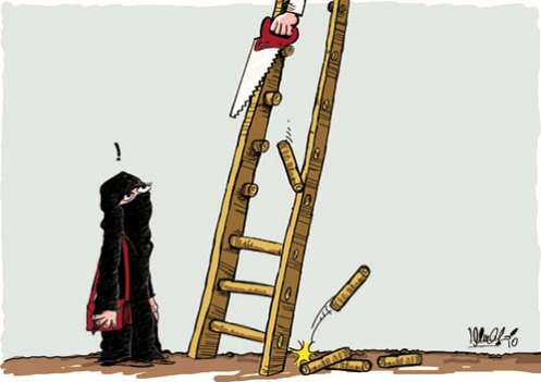 لأن المرأة أصلاً فوق لا تحتاج لسلم حتى يستحدث من يكسر السلم !!