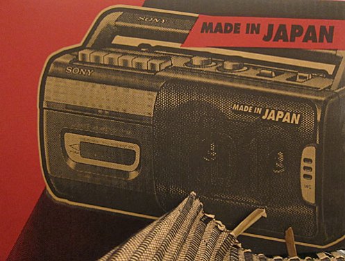 من ضمن ما اقتنيته مسجل متنقل يعمل بالبطاريه و بالامكان ايضا شبكه بمحول الكهرباء ، ابتعت له ايضا بطاريات من النوع القديم، حمراء رسم عليها هر اسود يقفز اويعبر طوق ما .