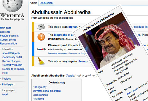 + رابط حسين عبدالرضا في الويكبيديا الانجليزيه .