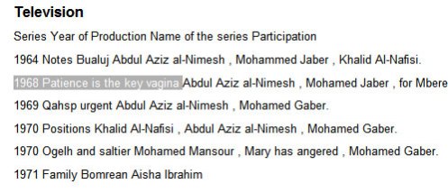 لذا كان لا بد من التصحيح والتعرض ، فلك ان تتخيلي لو بقيت المعلومه كما هي في ويكبيديا ، لتم استخدمها كدليل بعد عدة سنوات للترويج – مثلا – بان العرب مسلسلاتهم وبرامجهم ذات هاجس جنسي ومن ضمنها هذا العمل الذي يتضح من عنوانه انه كذلك !