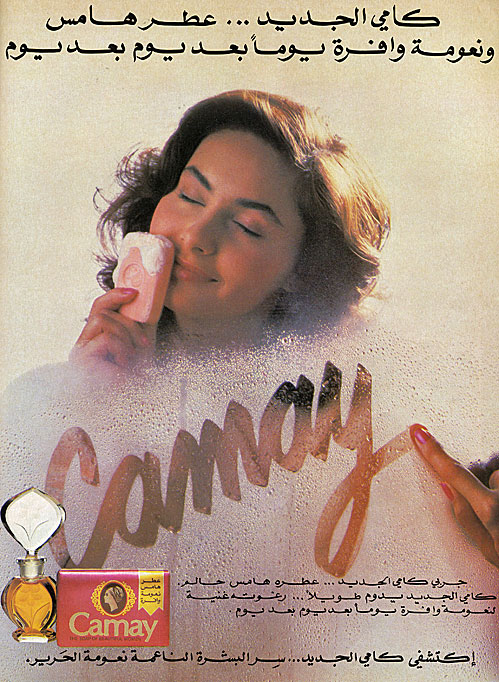 بوستر اعلاني لصابون كامي العطري الجديد ، يعود تاريخه الى عام 1984 ميلاديه ، نشر في مجلة سيدتي وفي مجلات اخرى ، كان يعرض مصور في شرائط فيديو مع الاعلانات التجاريه بين مشاهد الافلام .