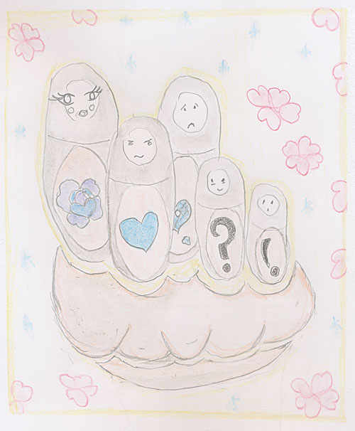 شعرت أن صنع هذا العمل مؤثر أكثر من تلوينها في الموضوع السابق ، كل المراحل هنا من تصميمك و صنعك وهذا أكثر من جميل ، ربما يجب الآن اختيار اطار لهذا العمل ووضعه بجانب العرائس كصورة تذكاريه أتخيل أنها ستبدو مذهله بجانب بعضها ، شكراً استمتعت كثيراً هنا 🙂