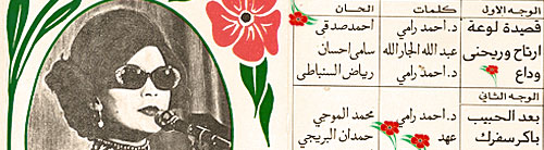 + ارفق مع الموضوع ملف صوتي اعددته لمقاطع من اغانيها – قد لا تكون الافضل او الاجمل – للاستماع او الحفظ في الجهاز اضغط هنا .