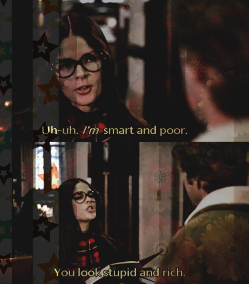She : I’m smart and poor.