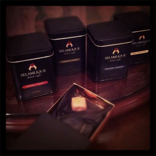 اربعة علب من القهوة لكل منها نكهة تميزها ، الاولى بالقرفة والثانيه بالهيل و الثالثة بالمستكه والرابعه تقليديه ، اتتنى هدية مع علبة صغيرة من الحلوى وهي اكثر ما احببته الى الآن .