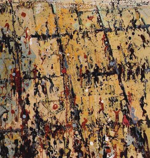 + الصورة اعلاه جزء من عمل للفنان المصري محمد عبله رسمها في الثمانينات الميلاديه وعنوانها ” ازدحام ” .