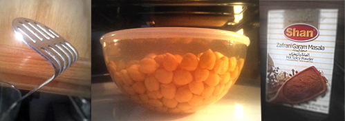 نكشف الغطاء و نحرك مرة اخرى ثم نأتي بهراسة البطاطس وهي بحجم معلقة السكب لكن نستخدمها هنا لأجل هرس بعض الحمص مع الخليط تماما كالفول المدمس بعد ذلك نضيف المزيد من الماء أو الملح حسب الحاجة و قد اكتفيت في هذه الخطوة باضافة بعض الماء و المتبقي من الفلفل الاسود فحسب ثم غطيته مرة اخرى ليكمل طهيه على نار اقل من متوسطة بقليل و اقرب للهادئه .
