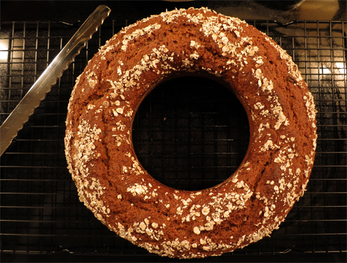 + رششت على وجه الكيك و قبل ادخاله الفرن بعضا من الشوفان لمزيد من الصحة و لشكل جمالي أفضل .