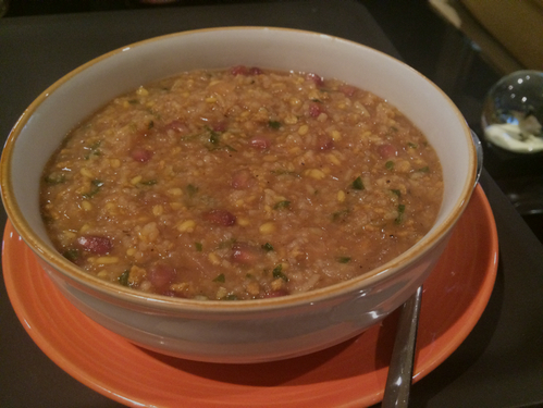 شوربة الرمان ، وجدت الوصفة في هذا الفيديو ، قمت بأعدادها فكانت وجبة متكاملة تناولتها وقت الغداء ، أخذت بعض الوقت لكنها تستحق التجربة لوجود نكهة جديده و طعم مختلف .