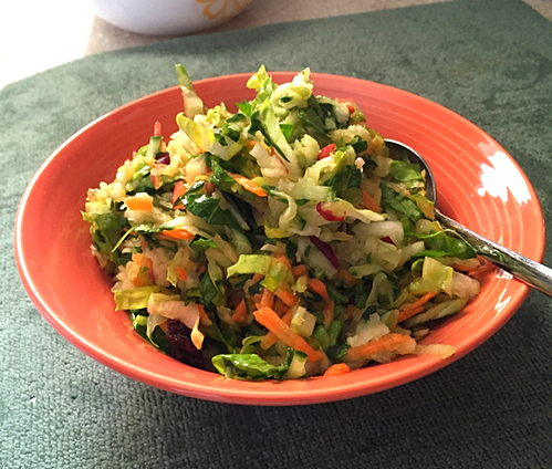 ابتكرت هذا الطبق اليوم ، حرصت أن يكون أغلب ما به مبشور سواء من الخضروات أو الفاكهة ، فأسنان أحد الذين سيتناولونه لم تكن بحالة جيده .