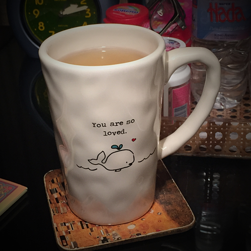 عند خروجنا اعطتني كيس  به هذا الكوب هديه و قالت لي ” أنت روح تتحب و تتحب أوي و اللي يشوف غير كده هو حر ” .