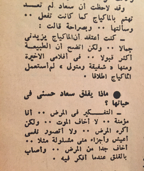 مقطع مؤثر من لقاء تم مع الراحلة سعاد حسني عام ١٩٧٨م في مجلة ” الكواكب” عدد ١٤٢٩، اجرته معها ماري غضبان ، و استوقفني هذا الجزء القصير و أثر بي !