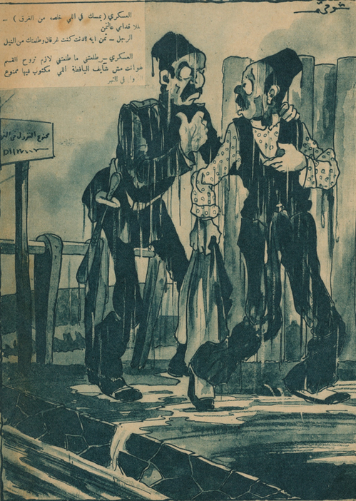 نشر هذا الكاريكاتير في مجلة ” الفكاهة ” العدد 201 الصادر بتاريخ الاربعاء 11 اكتوبر 1930 ميلاديه .