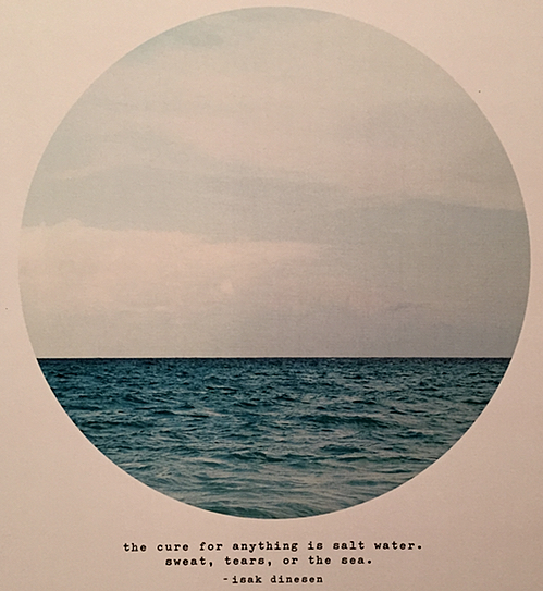 ”  الماء المملح علاج لكل شئ ، كذلك التعرق ، الدموع ، أو البحر ” .  إساك دينسن .