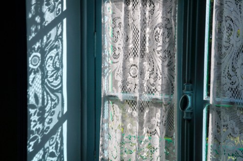 يدرك انها متيقظة خلف النافذة ذات الستائر المسدلة.