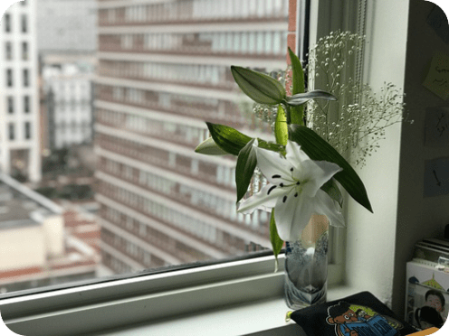 + اليوم حين استيقظت وجدت أحد زهرات غصن “الليلي/الزنبق” الذي اشتريت تفتحت، كانت البتلات منغلقة على ذاتها، كجفون مغلقة و للتو ابصرت، ربما هو أمر عابر، لكن أسعدني.