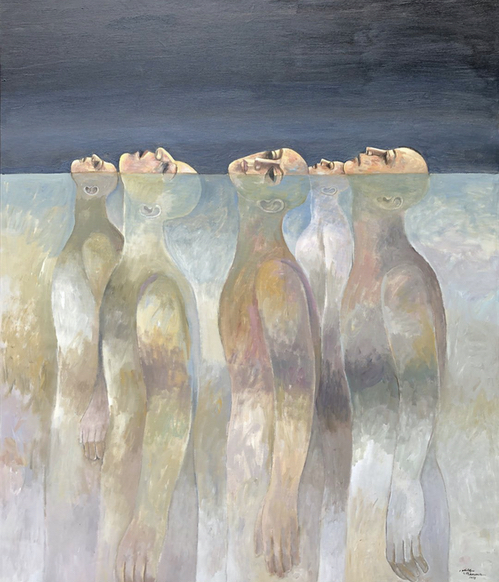 + اللوحة المصاحبة للفنان الفلسطيني “سليمان منصور” بعنوان (هروب مؤقت).